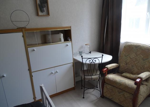 Équipements pour vos repas et petits-déjeuners : machine à café, bouilloire, grille-pain, micro-ondes et frigo