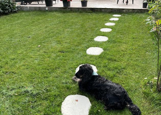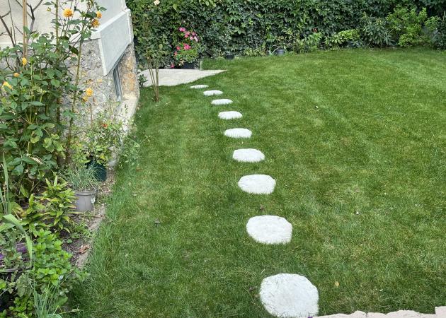 La maison est dans un écrin de verdure . Belle terrasse a partager avec nous.