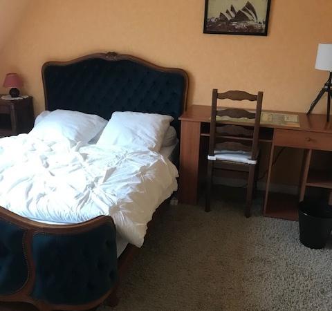 Chambre de 15 comprenant un lit double, une penderie, une étagère, un bureau, une commode. Dans une