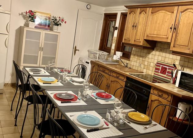 La cuisine se trouve au RDC de la maison de l’habitant, elle est à partager entre les 2 locataires.