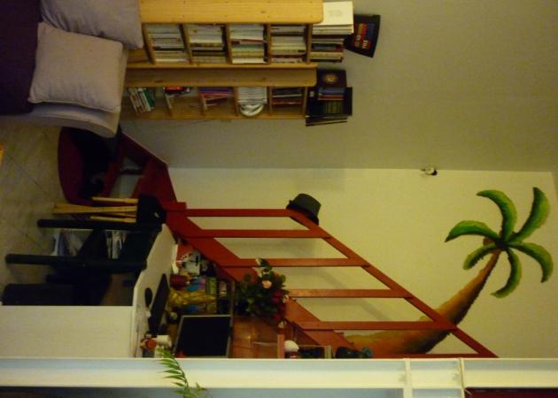 Ancien atelier d'artiste, il possède une chambre avec un lit double en mezzanine ouverte sur le salon et une chambre fermée avec un lit double et une seconde mezzanine munie d'un matelas double.