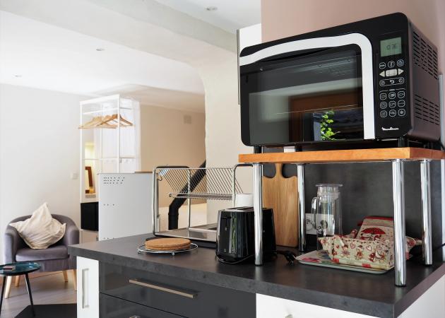 Un coin cuisine et un coin repas privés vous permettront de prendre vos repas en toute indépendance.
