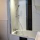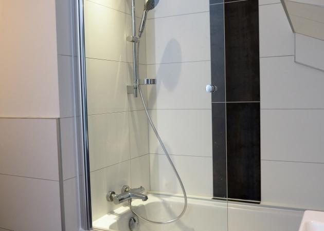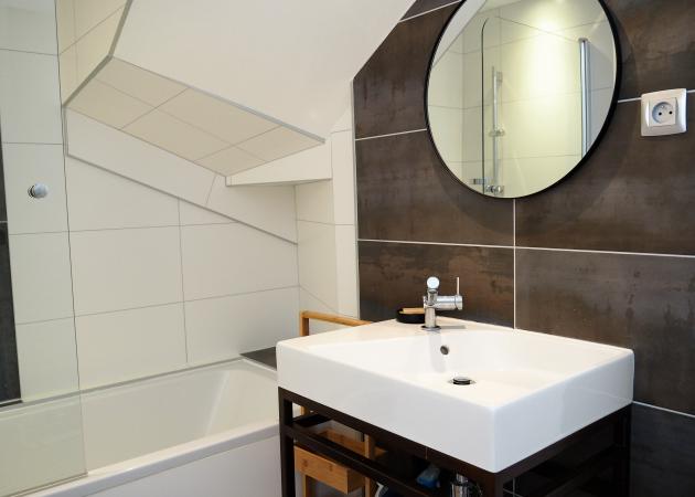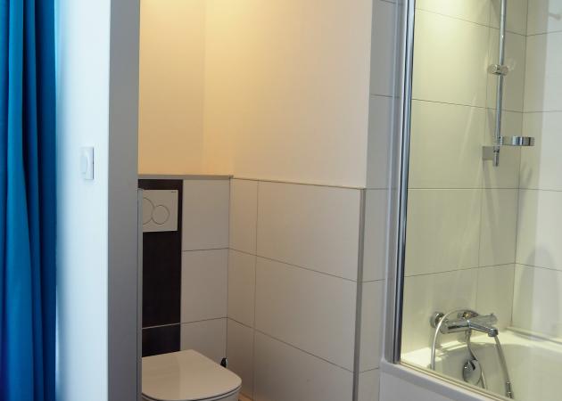Une salle de bains avec baignoire et toilettes vous est réservées avec le linge de toilettes.
