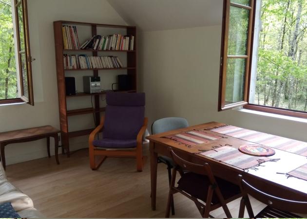 La maison se situe en pleine forêt, au grand calme, nous habitons au rez de chaussée et l'espace loué est au premier étage, Il n'y a pas de transport en commun, d'où la necessité d’avoir une voiture