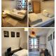 L'appartement est entièrement équipé : 1 four, 1 micro-onde, 1 plaque à gaz, 1 hotte, 1 lave vaisselle, 1 réfrigérateur/congélateur, 1 cafetière, 1 grille pain et tout le nécessaire pour cuisiner et manger, salon avec balcon, table, chaises, canapé, fauteuils, TV (grand écran plat), aspirateur, nécessaire de ménage, 1 machine à laver + sèche linge …