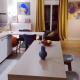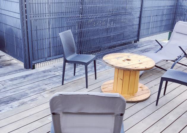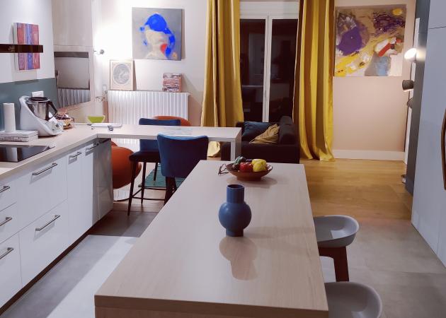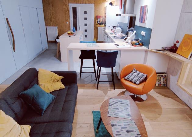 Une maison joliment décorée avec une grande cuisine américaine toute équipée+ salon de 40m², une grande chambre parentale et un WC séparé tout au RDC.