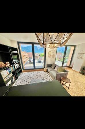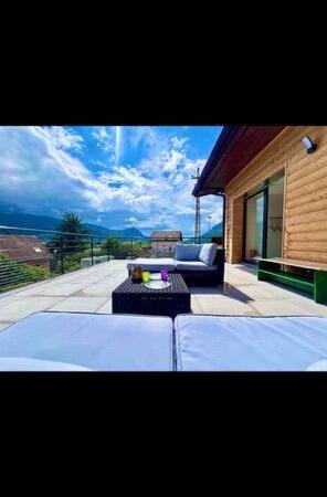 La terrasse et son poêle à bois seront ses points forts !! Avec une vue panoramique sur les montagnes.