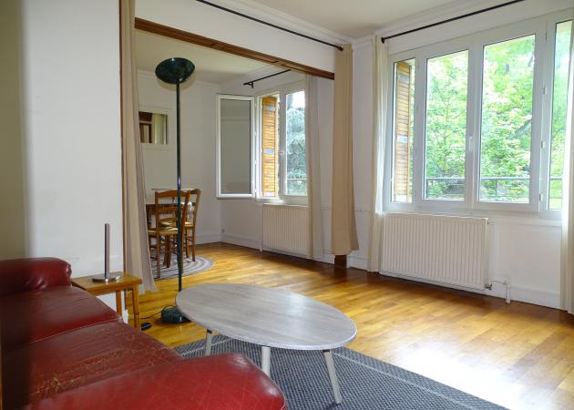 Appartement meublé de 66 m² comprenant 2 chambres, grand salon (env. 25 m²) sans vis-à-vis (vue jardin), cuisine équipée (lave-vaisselle, four + micro-ondes, 1 réfrigérateur simple + 1 réfrigérateur/congélateur), salle d’eau (douche, lave-linge), toilettes séparées, 2 grands placards de rangement dans le couloir.