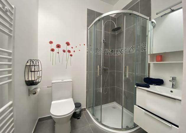 Chaque chambre a sa salle de bains privée, WC privé, son bureau, le linge de maison est inclus, ainsi que la Fibre, et Netflix sur toutes les TV (3 chambres sont équipées + le salon)