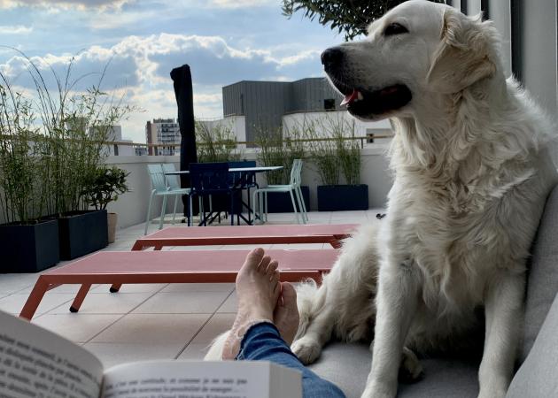 Pam, notre golden retriever sera ravie de vous souhaiter la bienvenue.
