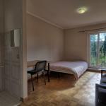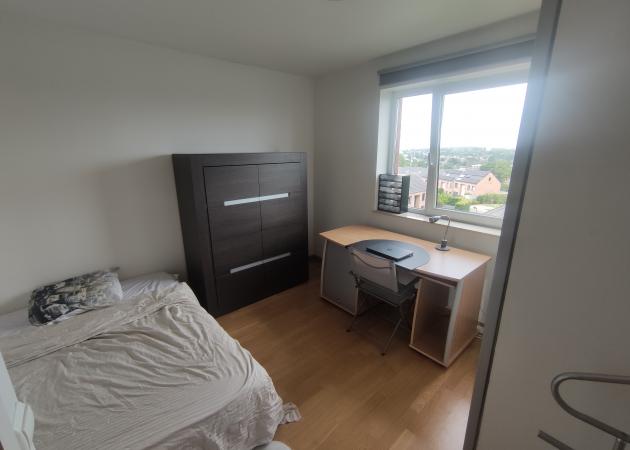La chambre est également meublée, garde-robe, lit double, bureau.