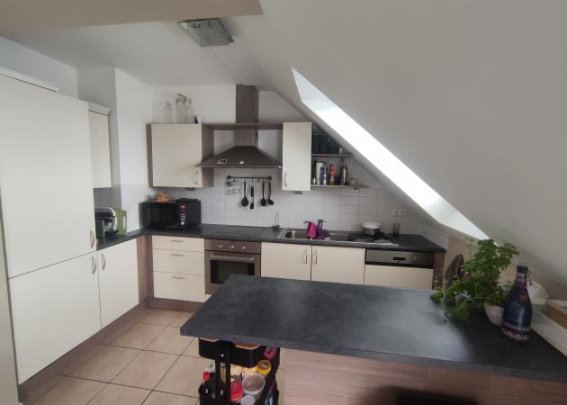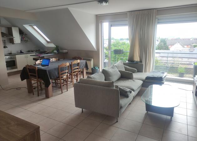 Situé au 4ième et dernier étage (avec ascenseur) d'un bloc d'appartement dans un quartier très calme ! L'habitation est composée de 2 chambres, d'un grand séjour avec cuisine ouverte, d’une salle de bain, d’un wc, d'un débarras, d’une cave et d'un balcon où l'on peut faire pousser un p'tit potager.