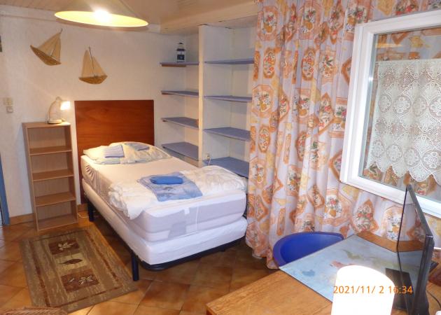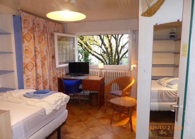 A partager: Une grande entrée, une belle cuisine équipée (Lave linge,mini-four, micro-ondes, frigo-congélateur, plaques électriques, petit électroménager, vaisselle et tout le nécessaire pour cuisiner, rangements pour vos provisions, fer à repasser, TV et lecteur DVD, table chaises,etc...); Une salle de douche et cabinet de toilette, wc indépendants. Parking devant la maison. Internet. Accès jardin.