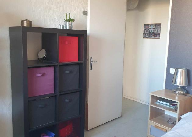 Je loue une chambre (locataire femme) au dernier étage avec ascenseur, sans vis-à-vis, donnant sur la cour d'une résidence à l'écart des bruits de voitures.