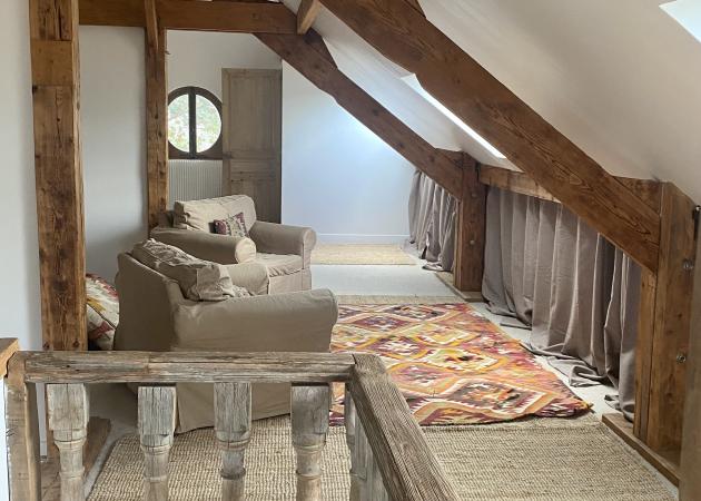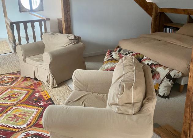 théière, micro-onde, TV sont fournis ainsi que les draps et serviettes. La douche se situe au deuxième étage en bas des escaliers du loft.