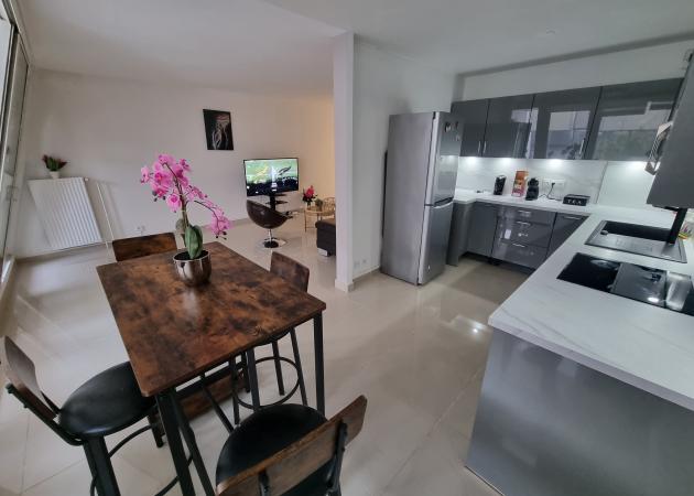 L'appartement à été rénové et propose des prestations modernes et fonctionnelles toutes équipées.