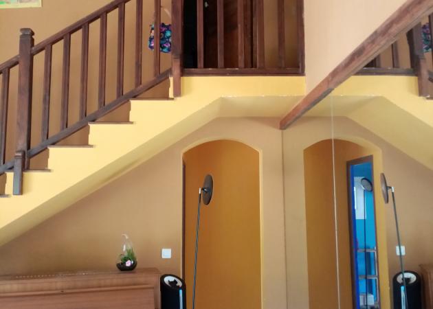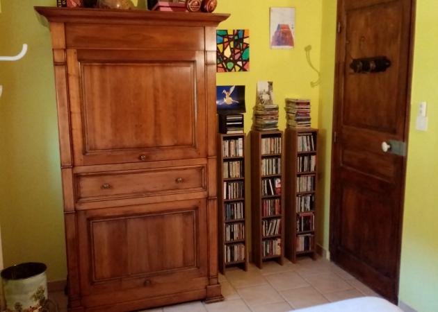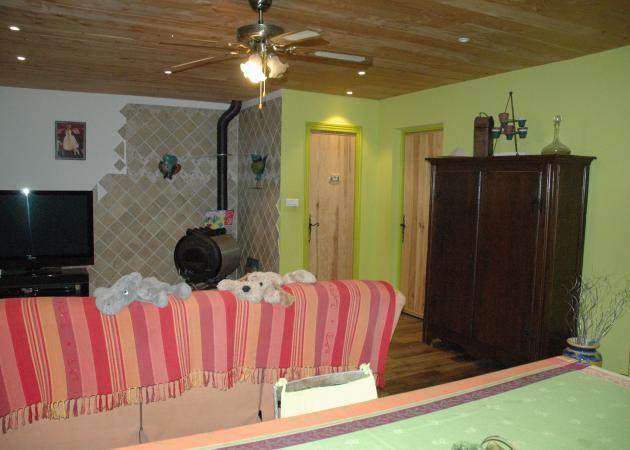 Meublée avec sobriété, la Bouscarle ( la maison de Stéphanie) datant de 1970 se compose de 2 étages : au rez de chaussée, un T3 indépendant, entièrement voué à la location + le T8 en duplex, où vit Stéphanie, dans lequel elle loue 4 chambres, 2 salons dont un avec piano et mirroir, avec accès direct à la terrasse avec salon de jardin donnant sur la piscine.