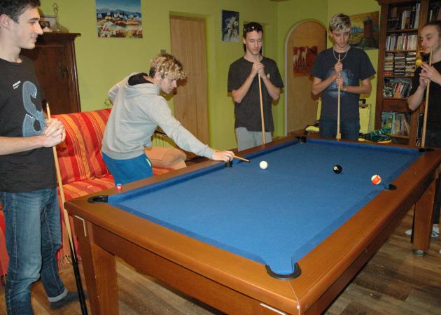 Dans le grand salon de Stéphanie, au premier étage, un billard, une télévision et une bibliothèque sont à la disposition des locataires.