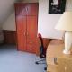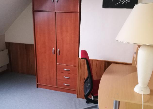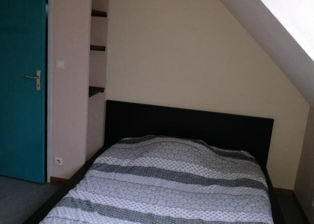 Chambre avec lit pour 2 personnes à l'étage, armoire et bureau.
