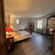 À l’intérieur une superbe chambre très spacieuse avec accès partager à une salle de bain avec baignoire et douche ainsi qu’un toilette.