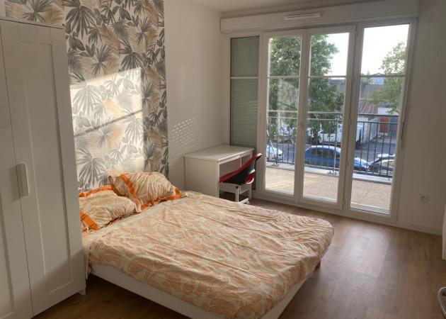 *** Chambre disponible : 1 chambre sur 3 est disponible dans appartement neuf (livré en février 2023) et mobilier entièrement neuf 11 m2 (lit 2 places, placard, bureau, chaise, balcon privatif…)