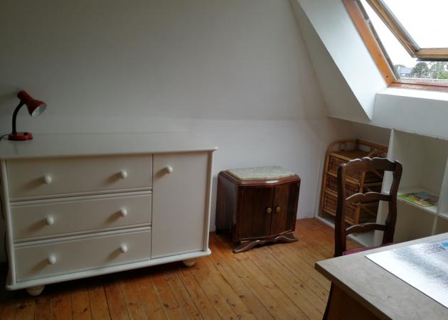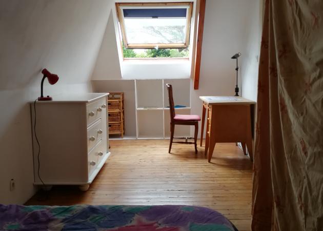 Lors de votre réservation nous vous remercions de vous présenter et donner globalement la raison de votre séjour. Chambre à l'étage de notre maison du lundi au vendredi pour étudiants ou stages. WI FI Lit 160 bureau chaise armoire wifi. Au RDC cuisine, salle de bain et wc à partager. Propriétaires présents : Marylise et Frédéric 63 et 59 ans 2 grands chiens très gentils (votre chien accepté après discussion et accord préalable). Locataire présente également dans chambre voisine Au jardin vous pouvez fumer. Ambiance cool. Végétariens, végétaliens, bienvenus mais tout public accepté. Bus proches num 2a et num 3 pour centre ville (25 min de trajet). Bus 4 pour les FACS au pied de la maison (20 min de trajet max). Accès sortie nord brest 3 min en voiture. Commerces de proximité à 5 min à pied (pharmacies, boulangeries, primeurs, tabac, presse, marché le vendredi) Pour 1 personne 25 euros la nuit, petit dej compris, repas du soir possible en supplément 7 €. Cuisine familiale et bio du marché. Produits locaux privilégiés.