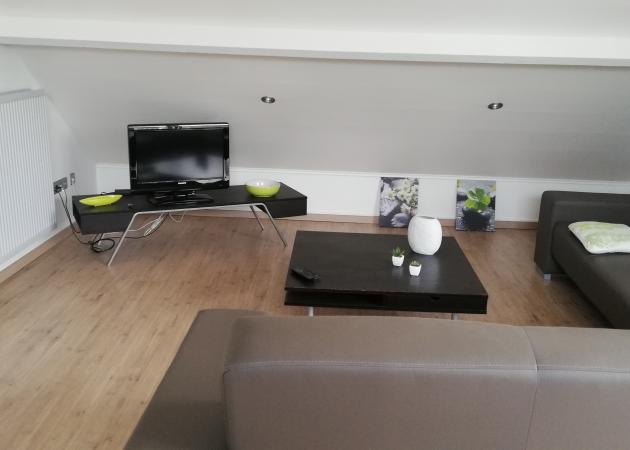 Cuisine équipée, micro-ondes, lave-vaisselle. Séjour avec tv