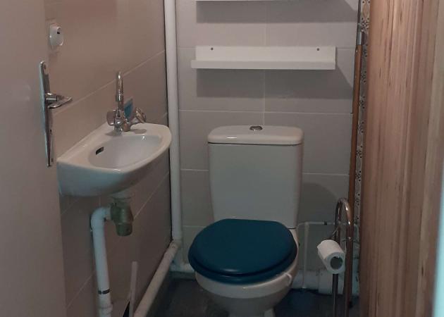 La salle de bain et le coin cuisine sont partagés avec d'autres locataires.