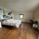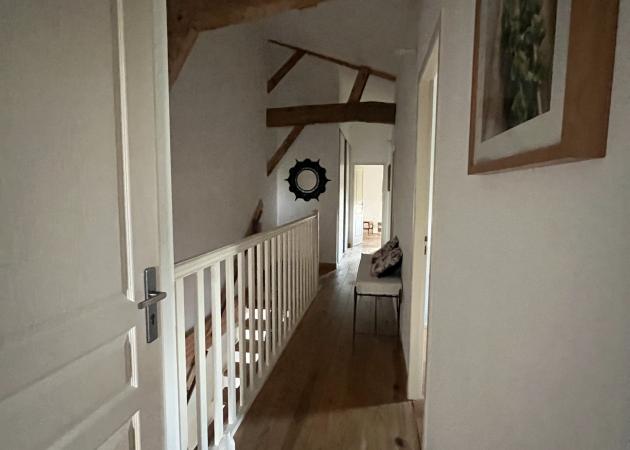 A louer une grande chambre de 21m2 située à l'étage, avec deux fenêtres sur jardin et dotée d'un dressing.