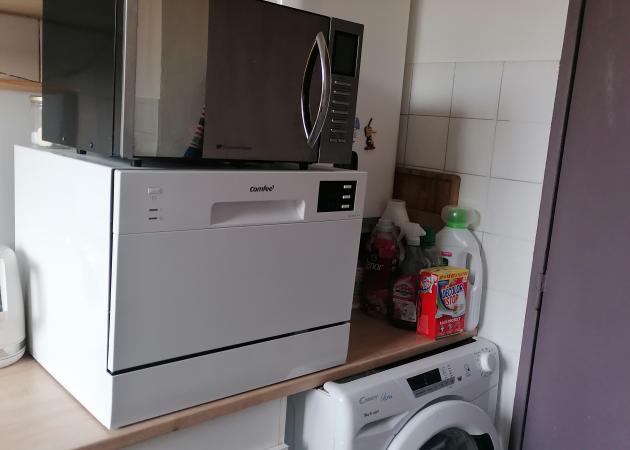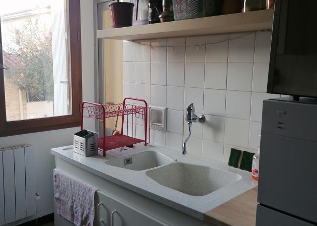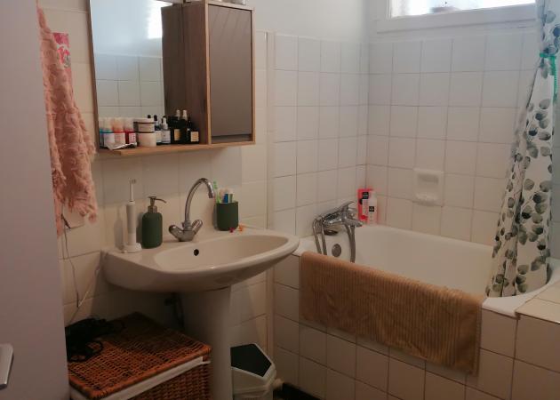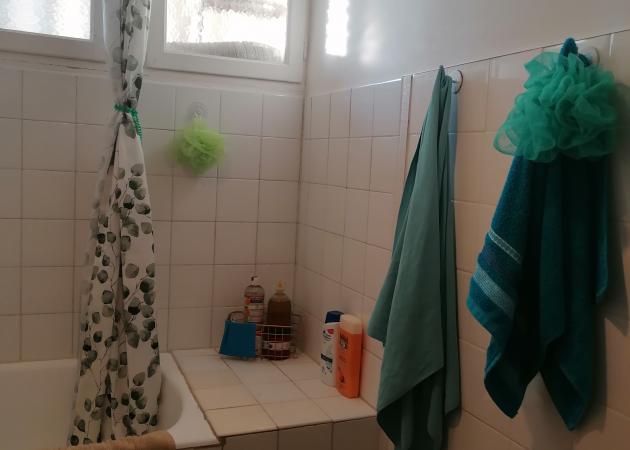 Les pièces partagées sont la cuisine, la salle de bain et les wc.