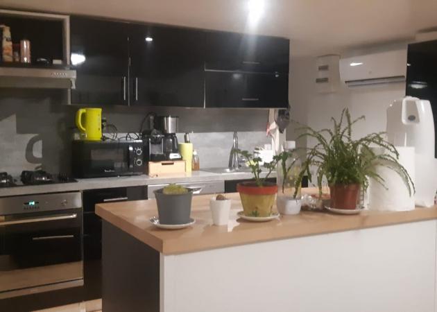Il y a une cuisine équipée ouverte sur le salon salle a manger.