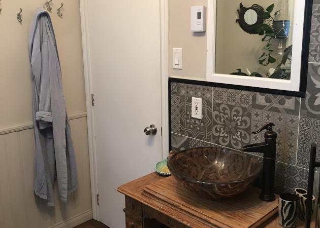Il y a une salle de bain avec douche, malheureusement sans bain.