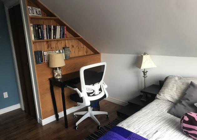 Au 1er étage, il y a 4 chambres d’environ 11 pieds x 9 pieds avec un lit, une commode et un petit bureau. Toutes les chambres sont décorées. Il y a moyen d'entreposer les décorations qui pourrait ne pas vous plaire. L’important c’est que vous puissiez personnaliser votre nid. Il est important pour moi de voir si vos besoins peuvent être comblés et si je peux les remplir en adaptant l’espace. S.V.P. veuillez me faire part de vos besoins lorsque vous communiquez avec moi.