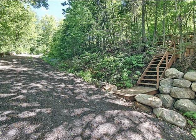à côté de la maison tout en haut de la pente et au bas, tout près de la plage. Mon driveway pour monter en haut c’est une côte. En hiver, parfois on doit se stationner en bas si la température ne le permet pas. Moi et mon déneigeur on essaye très fort pour la rendre montable tout l'hiver mais parfois selon mère nature on peut pas la dompter. Je me suis adapté assez rapidement, si je sens que je peux pas la monter je me stationne en bas je monte à pied et je fais de l'exercice.