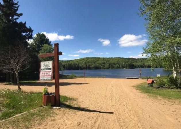 La plage est un lieu privé. On y retrouve un abri, des tables à pique-nique, un terrain de volley-ball, un BBQ et un quai de repos, sur l'eau