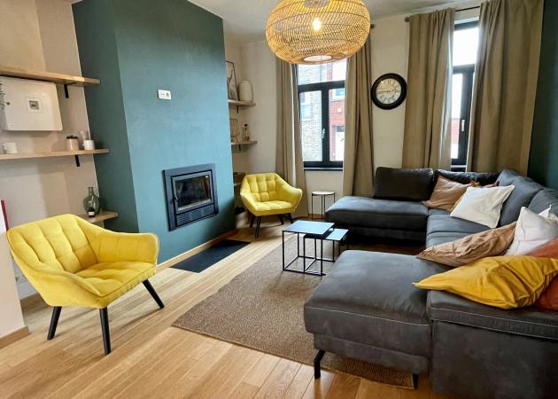 Les communs sont entièrement meublés comme sur les photos avec cuisine full équipée (four, micro-onde, cafetière, réfrigérateur, vaisselle,...) ainsi qu'un superbe feu ouvert. Les chambres sont louées non meublées. Il reste 3 chambres disponibles.