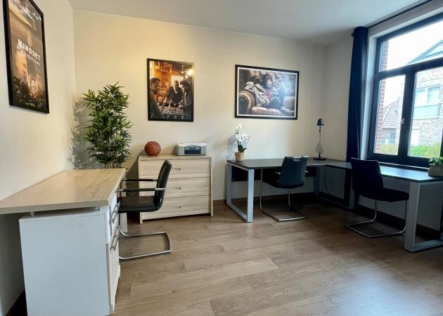 Magnifique maison de 250 m² tout fraichement rénovée pour six colocataires comprenant un séjour (cuisine, salle à manger, salon) de 50m², un bureau idéal pour le télétravail, buanderie (mach. à laver, séchoir, frigo américain), cave, 6 chambres de 13 à 17m², 2 salles de douche et 3 toilettes.