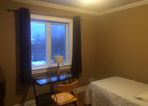 La chambre est très lumineuse, possède une penderie. La chambre est entièrement meublée.Partage de la cuisine, et salles de bains, salle de lavage.