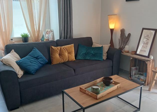 L'utilisation de la cuisine, avec le frigidaire er les appareils ménagers, le salon avec une connexion Wi-Fi.