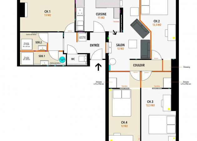 Chambre en colocation 4 chambres - gd appartement de 120 m2