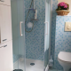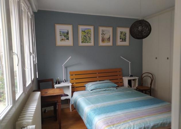 Cette colocation partage la cuisine et le salon avec les personnes de deux autres chambres, mais a sa salle de bain privée.
