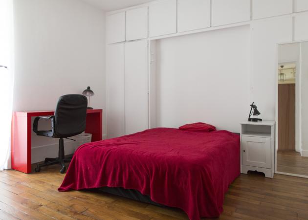 Belle chambre de 15m2, spacieuse, calme, sol en parquet, lit 2 places, un bureau et de très nombreux rangements.