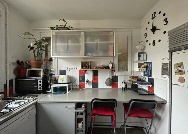 Espaces de vie commune salle de bain,toilette et cuisine sont à partager avec moi même.