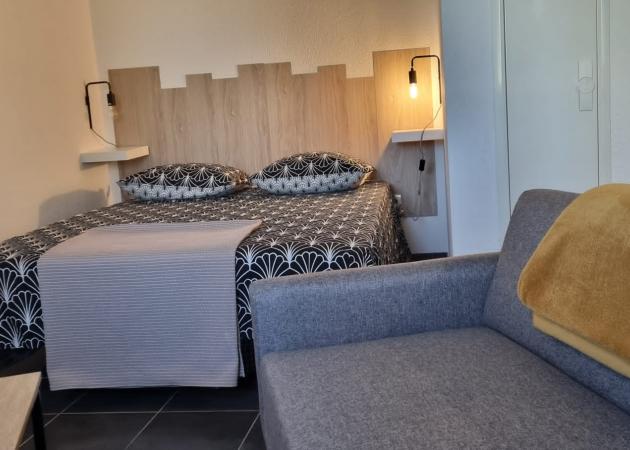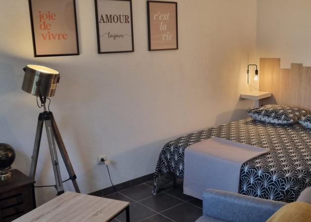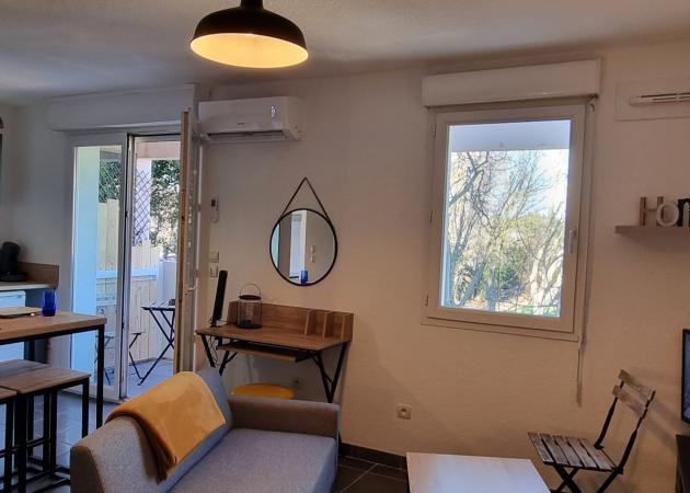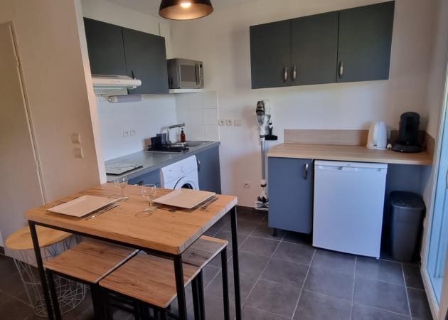 Studio meublé tout equipe lit en 140, coin salon et cuisine tres bien équipe. Petite terasse avec une vue sur un parc et un parking prive securiser.