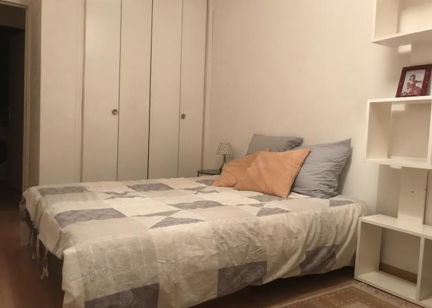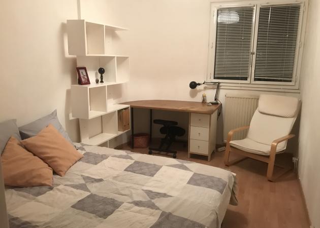 Appartement de 75m² au 1er étage avec ascenseur, chambre de 12m² avec lit deux places, bureau, placard et bibliothèque.