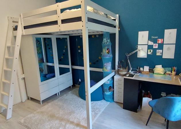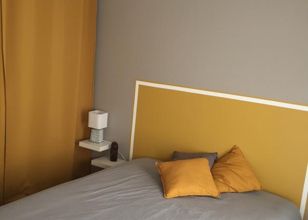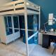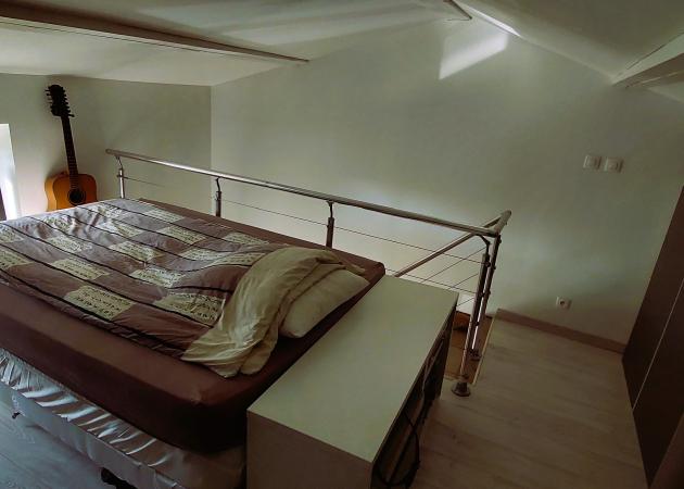 1 chambre avec lit 2 places, une mezzanine avec lit 2 places + 1 matelas une place, 2è chambre avec un lit mezzanine 2 places et 1 lit 2 places en dessous.