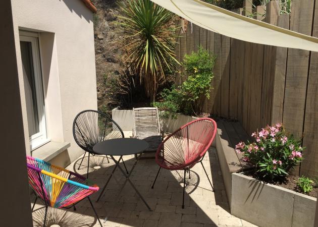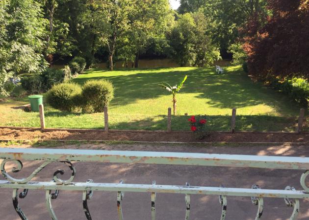 Jardin au bord de la rivière et terrasse pour les fumeurs