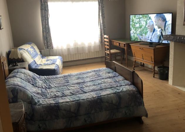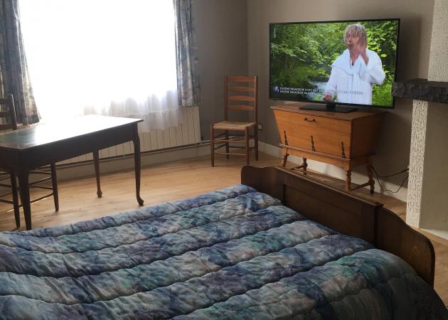 votre chambre dispose d'un lit 2 places et d'un lit 1 place ainsi qu'un bureau et un grand téléviseur.