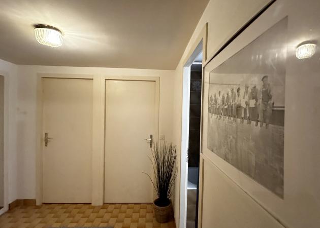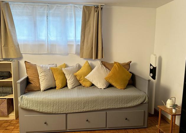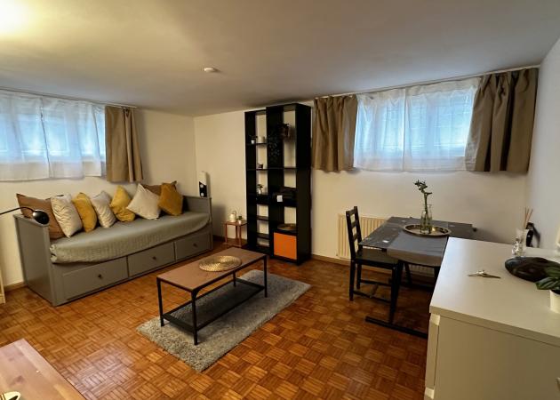 L'appartement se compose d'une cuisine, d'une salle de bain un hall une pièce avec des armoires pour ranger des habits ou autres et de deux chambre chacune d'elle correspondant à l'un des colocataire. Petit appartement au sous sol mais lumineux et très calme.
