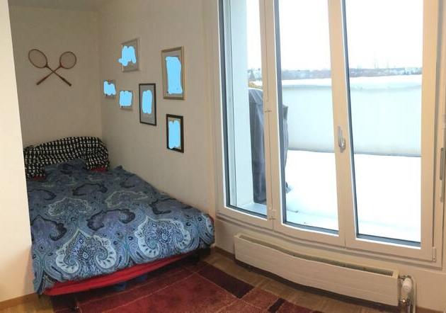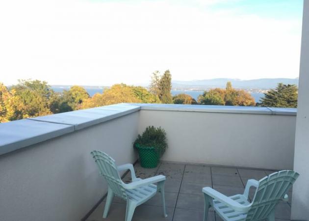 Charmant appartement de 4 pièces avec terrasse et vue sur le lac. Salon, cuisine et salle de bain partagés.